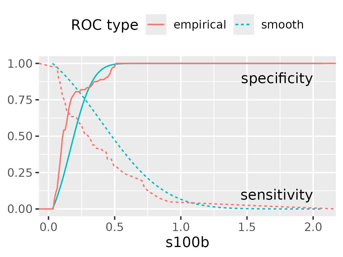 #> s100b .groups Good Poor .sensitivities .specificities .auc .roc_row