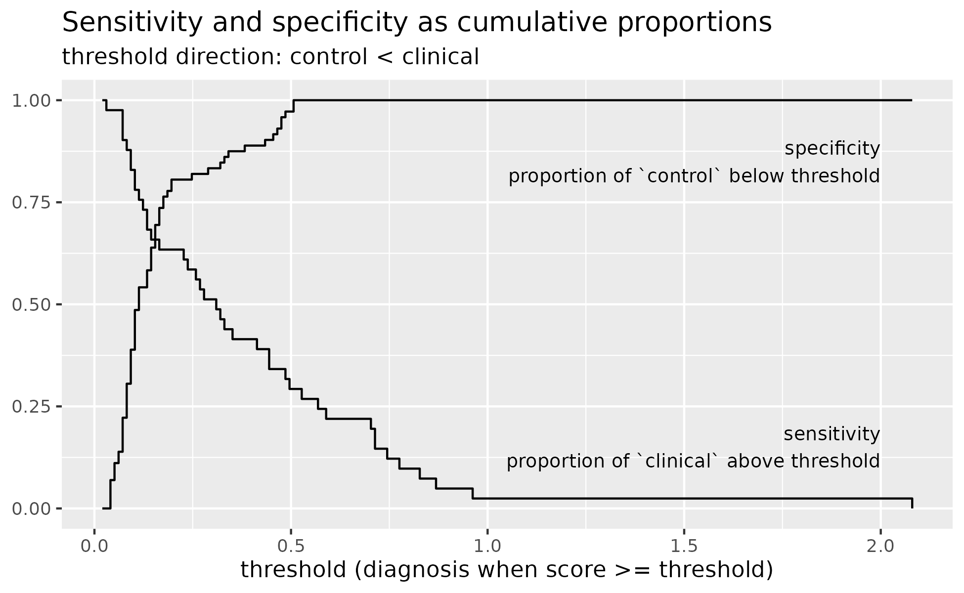 title = "Sensitivity and specificity as cumulative proportions",