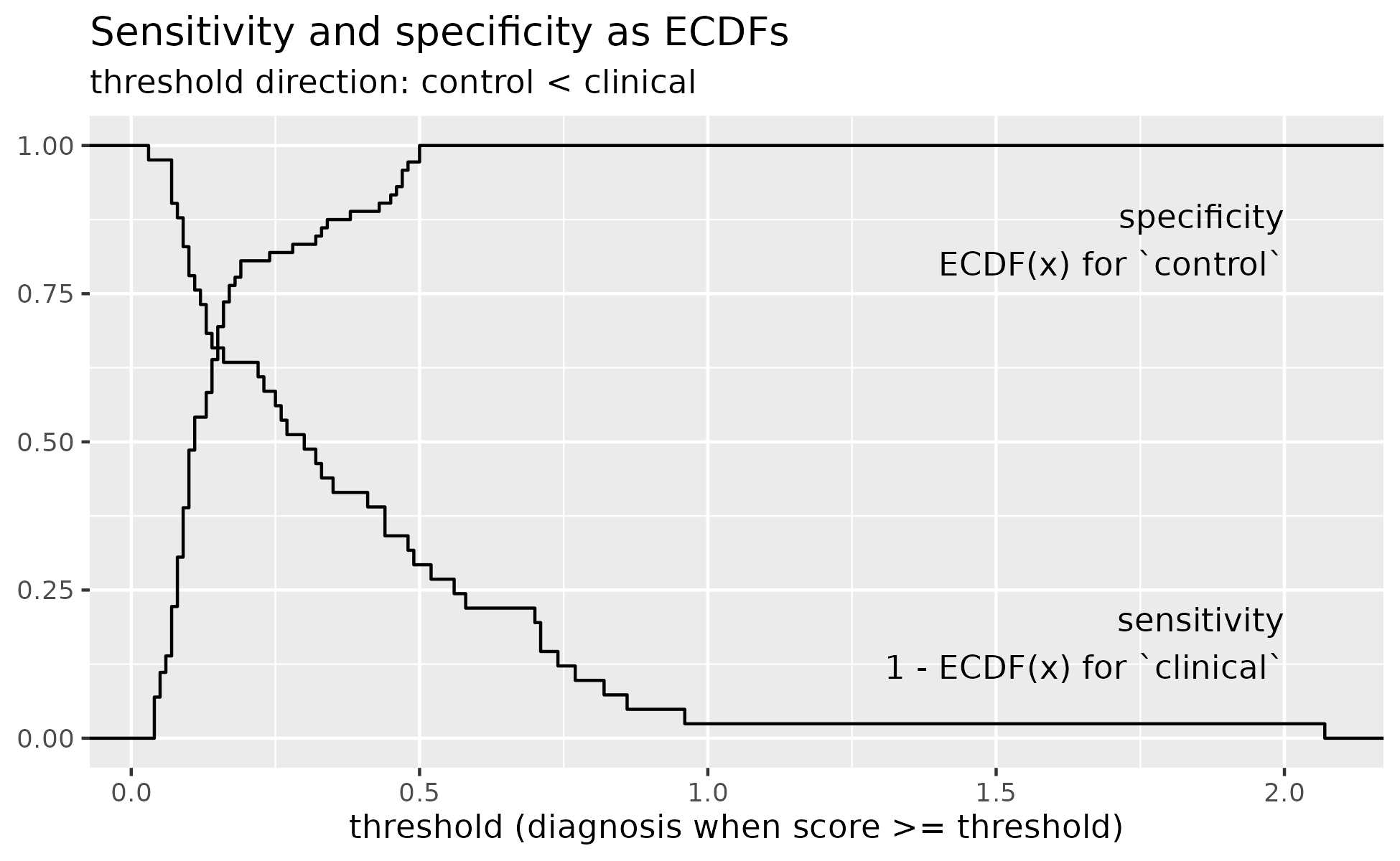 x = "threshold (diagnosis when score >= threshold)",