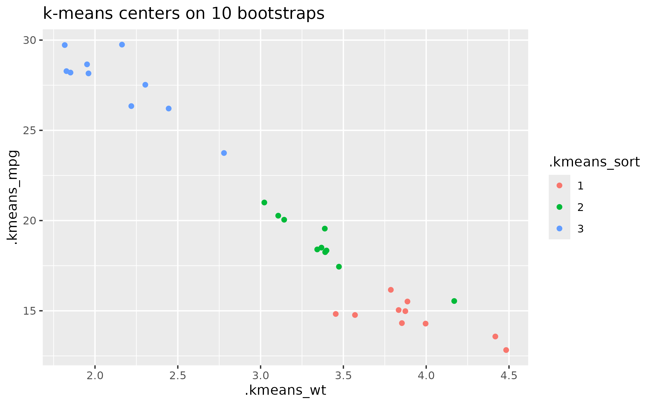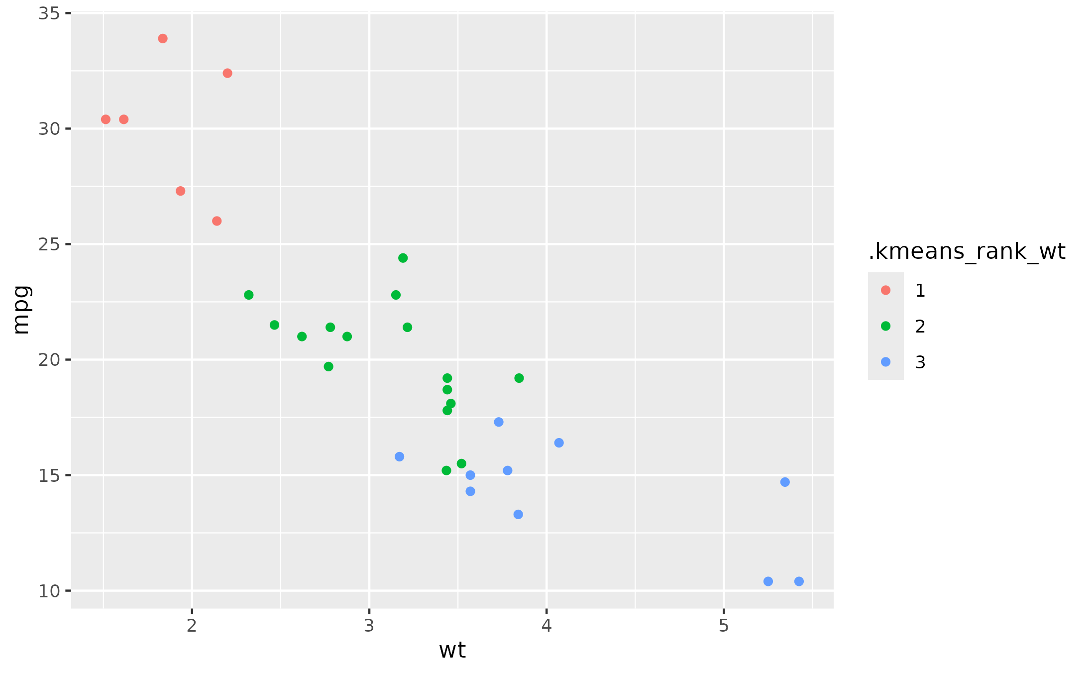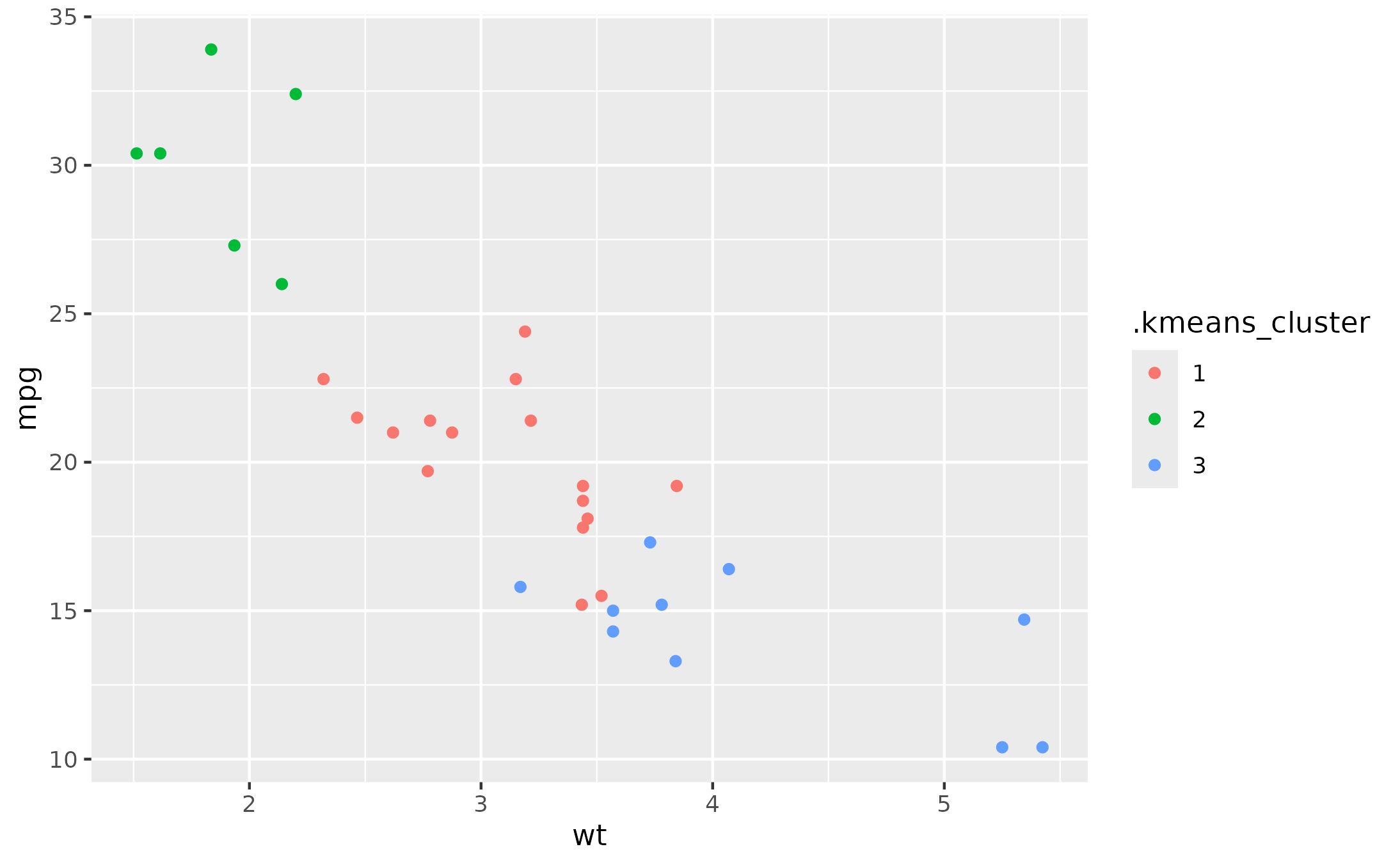 aes(x = .kmeans_wt, y = .kmeans_mpg) +